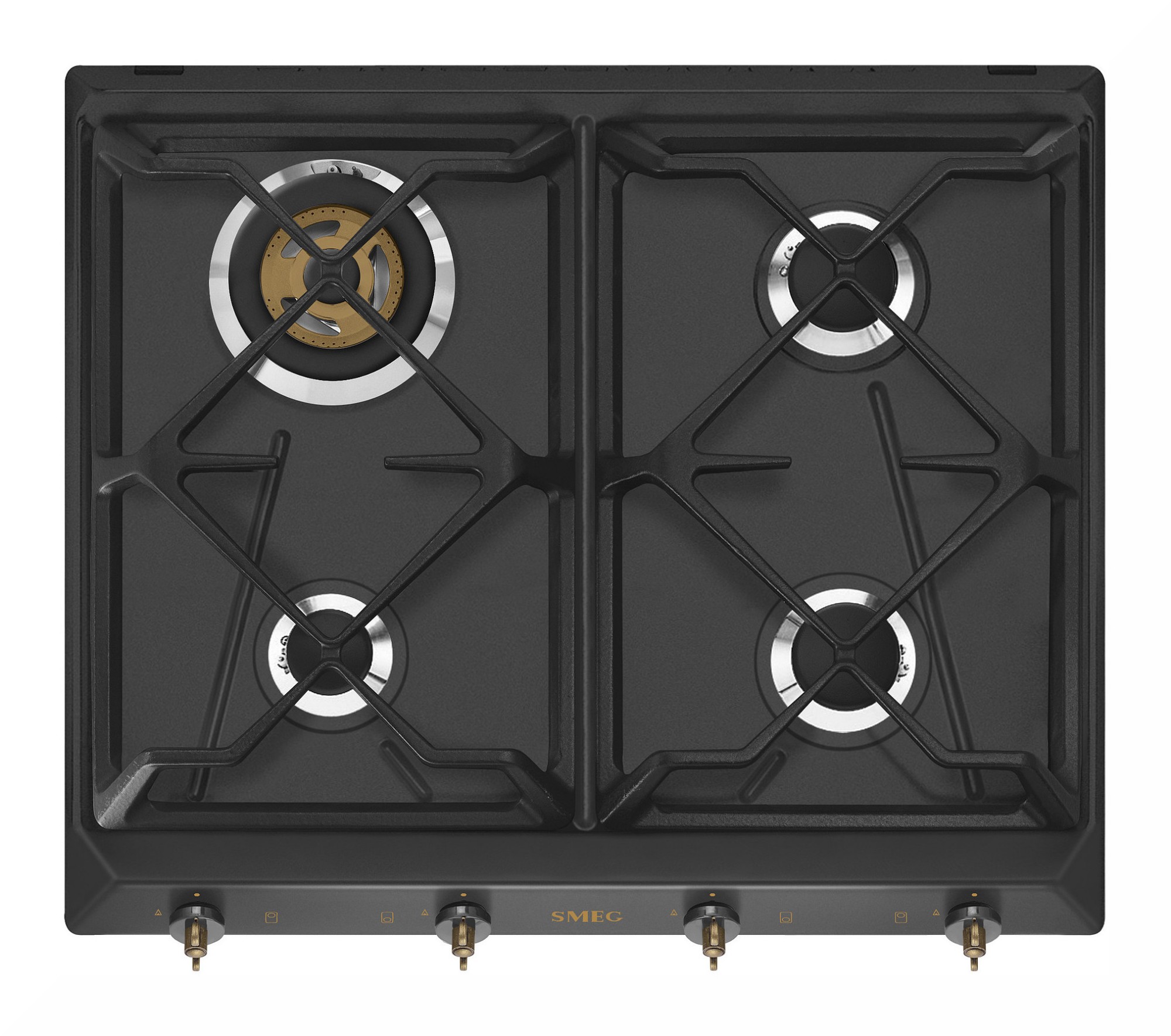 Plotis: 60 cm ▪ automatinis uždegimas ▪ apsauga nuo dujų nutekėjimo ▪ ketiniai puodų laikikliai ▪ valdymas priekyje ▪ antracito spalva ▪ žalvario spalvos apdaila |