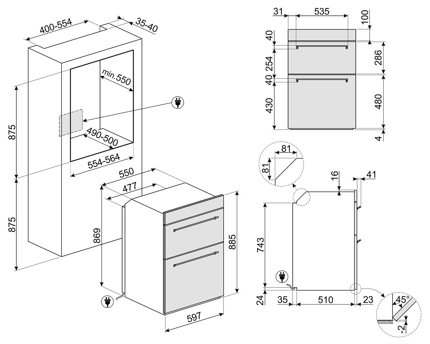 ................................................................................................................................... Papildoma orkaitė: energijos klasė: A ▪ elektroninė temperatūros kontrolė (50 - 270°C) ▪ 2 gaminimo lygiai ▪ talpa: 35 l (bruto 41 l) ▪ lengvai valoma "Ever clean" emalė ▪ metaliniai skardų laikikliai ▪ atlenkiamas grilio tenas ▪ halogeninis vidaus apšvietimas ▪ trijų stiklų durelės - "Fresh Touch" ▪ vidinė durelių pusė lygi ▪ vidinis stiklas lengvai išimamas 4 funkcijos: