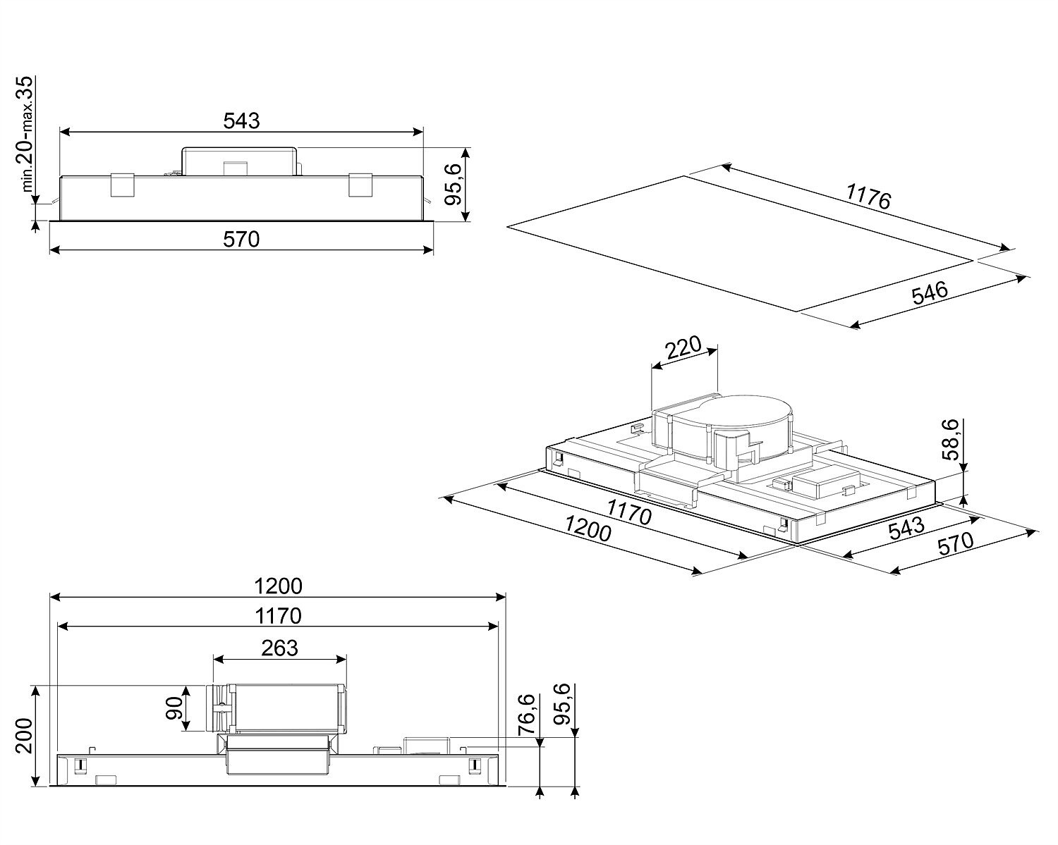 • Matmenys (A x P x G): 200 x 1200 x 570 mm