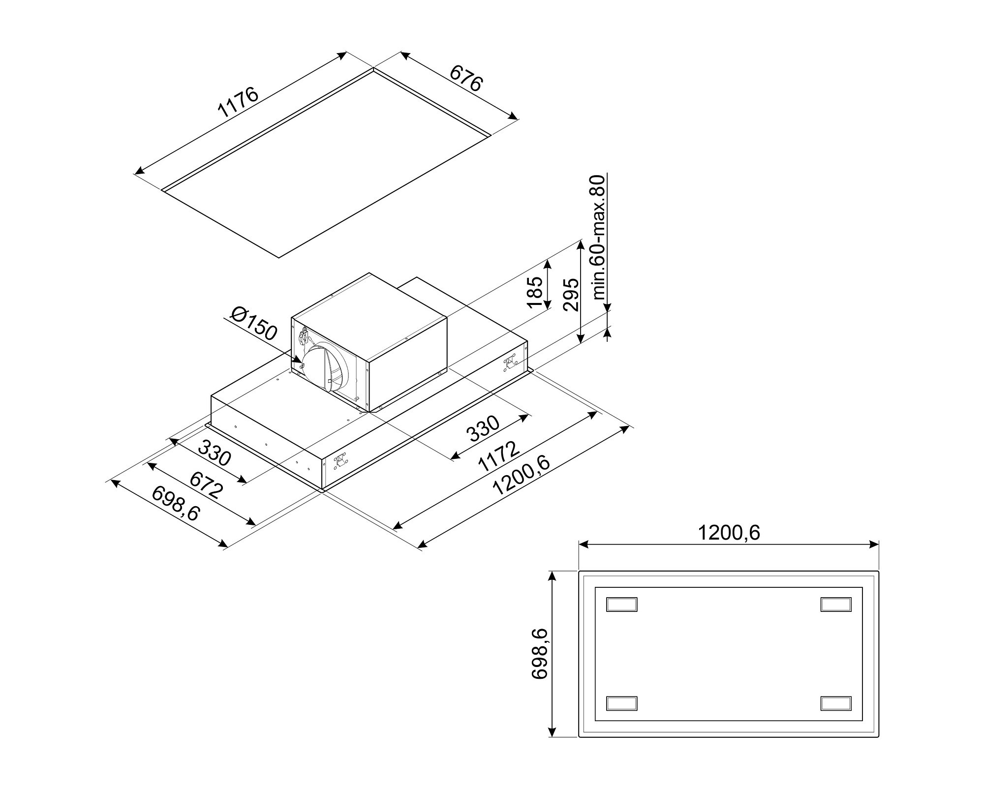 - Montavimo matmenys (A x P x G): 29,5 x 120 x 67,2 cm