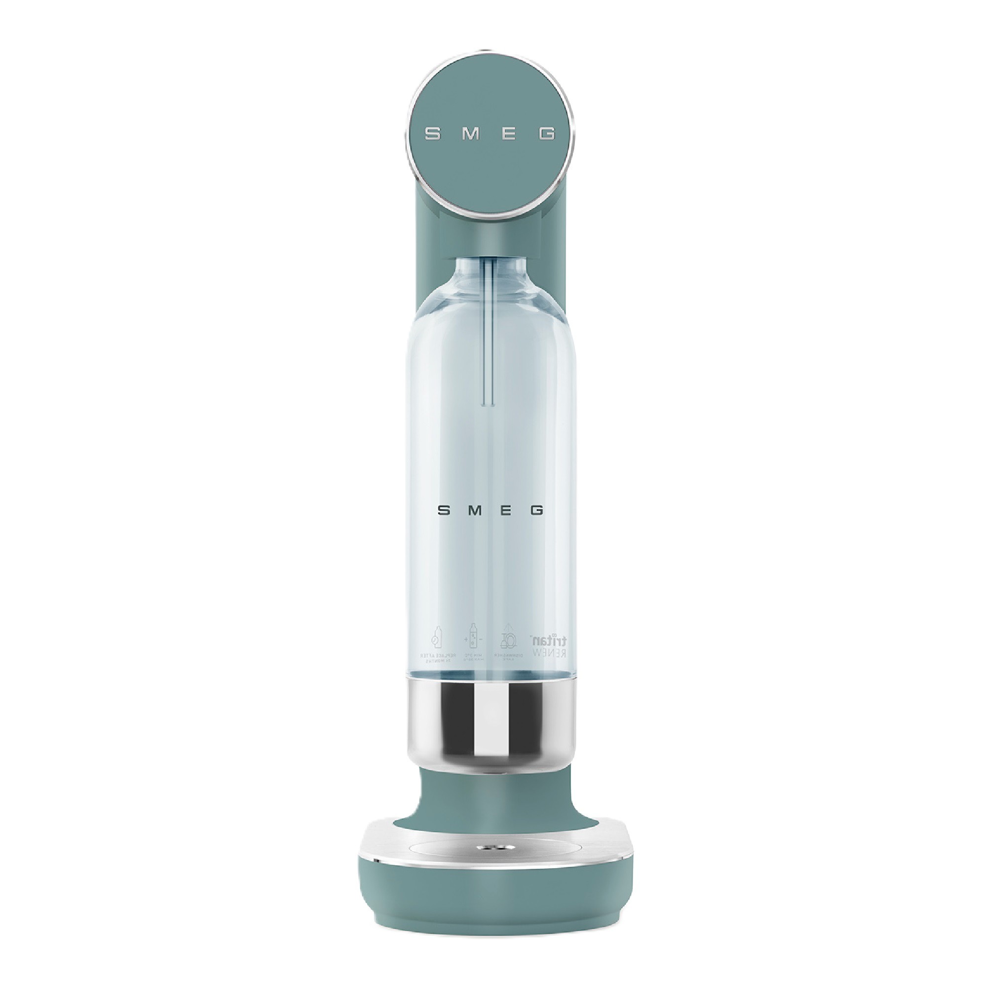 NAUJIENA “Smeg“ Gazuoto vandens aparatas! Apjungiantis eleganciją ir inovacijas. Su kompaktišku dizainu ir matinėmis spalvomis jis harmoningai derės bet kuriame interjere. Gazavimo reguliavimo rankenėlė leidžia pritaikyti CO₂ lygį pagal skonį, o magnetinis lašų padėklas užtikrina švarą. 800 ml „Tritan™ Renew“ butelis yra patvarus, skaidrus, indaplovėje plaunamas ir pagamintas iš 50 % perdirbtos medžiagos, skatinant tvarų vartojimą.