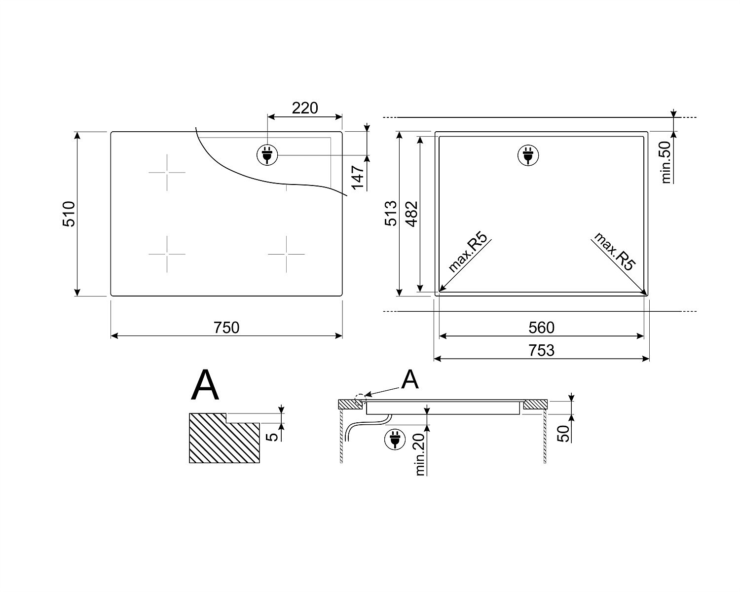 • Tinka montuoti lygiai su stalviršio paviršiumi