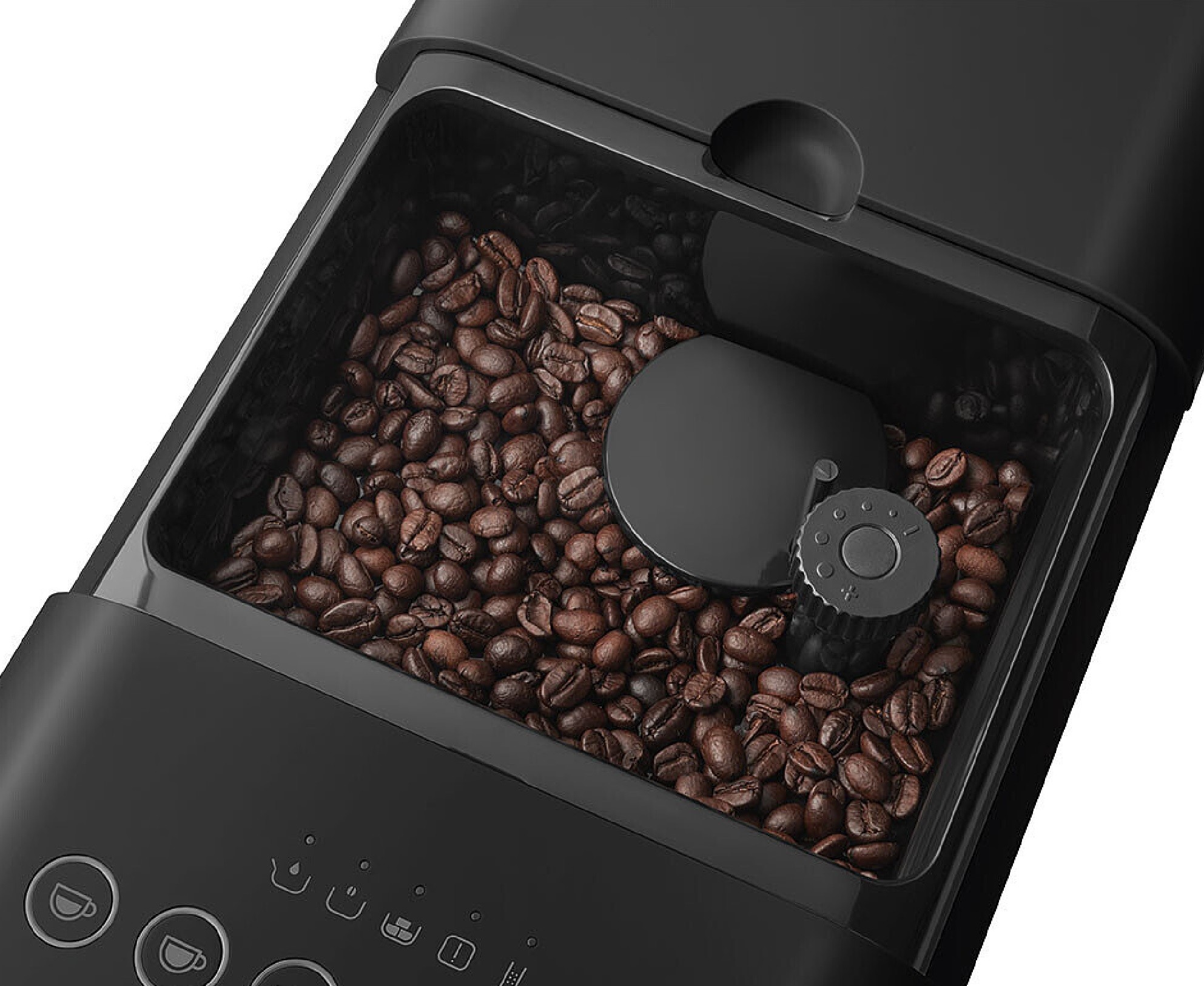 Ruoškite espresso, juodą kavą, karštą vandenį, kapučino, latte macchiato, švelnų espresso, kavą long, americano, espresso macchiato ir pieno putą.