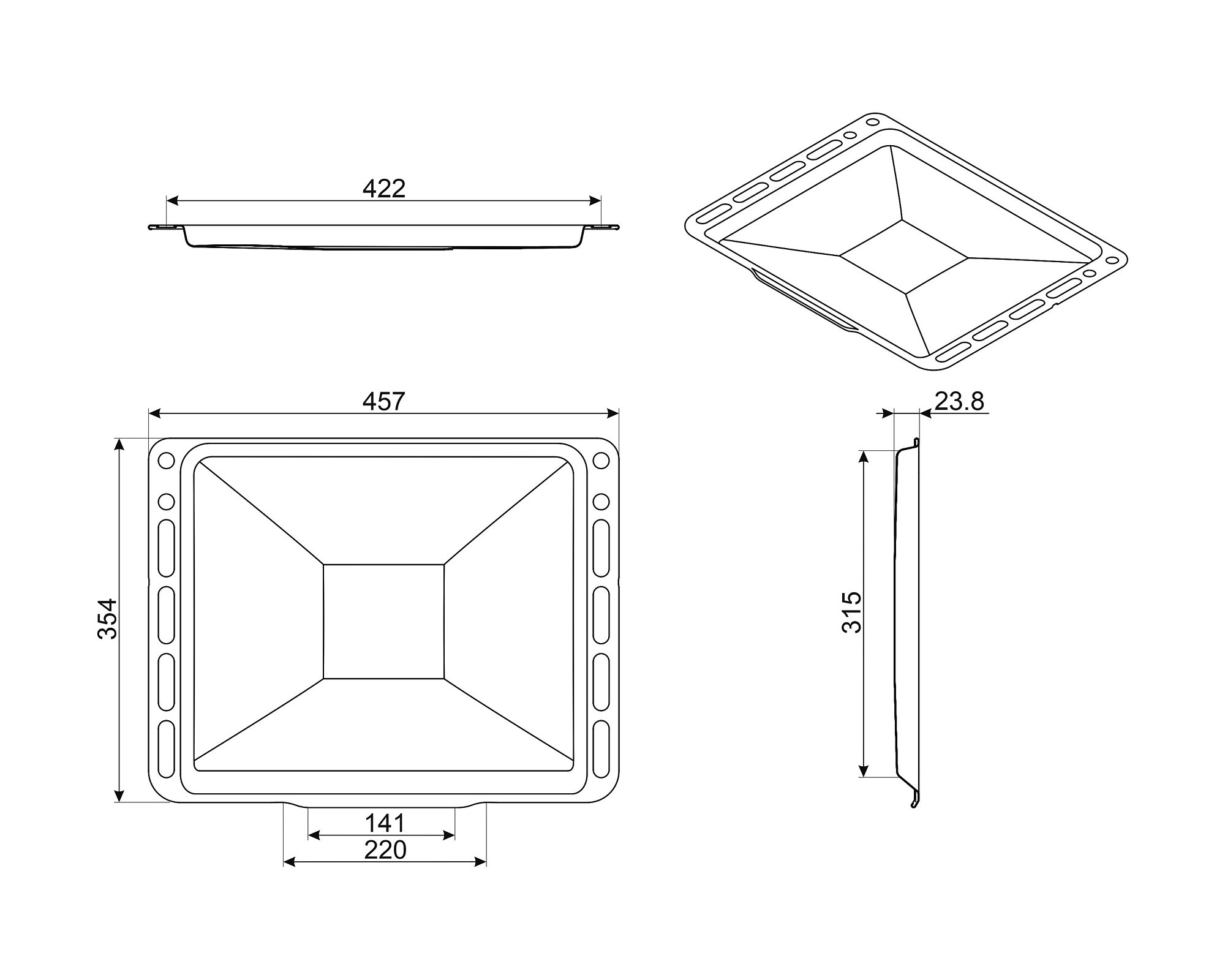 • Emaliuotas padėklas tinka 45cm ir 60cm orkaitėms SF.., SFP…