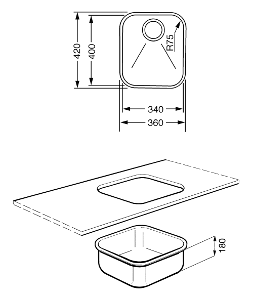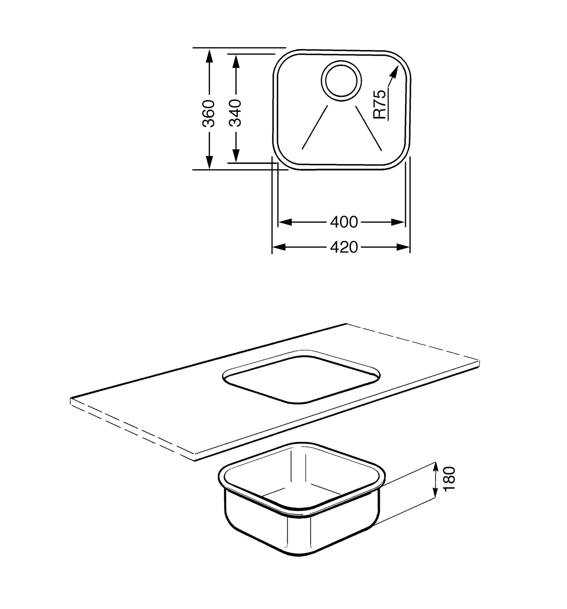 Montavimo tipas: po stalviršiu Matmenys: 360х420 mm ▪ dubens 340х400 mm ▪ dubens gylis 180 mm ▪ apsauga nuo perpylimo ▪ uždaromas ventilis 3,5" ▪ lengvas valymas ▪ paviršius atsparus įbrėžimams ▪ matinis nerūdijantis plienas ▪ plieno storis 0,7 mm ▪ montuojama į min. 45 cm spintelę. |