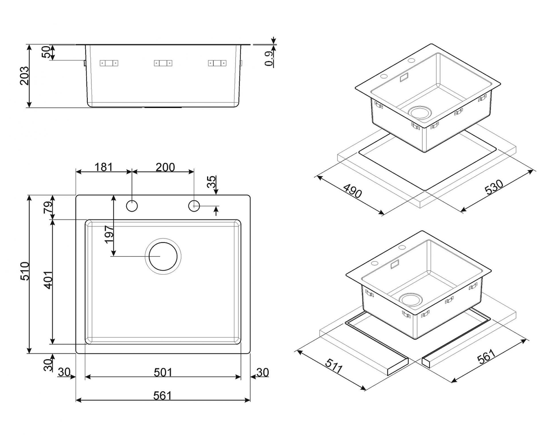 • Plautuvės aukštis virš stalviršio: 1 mm