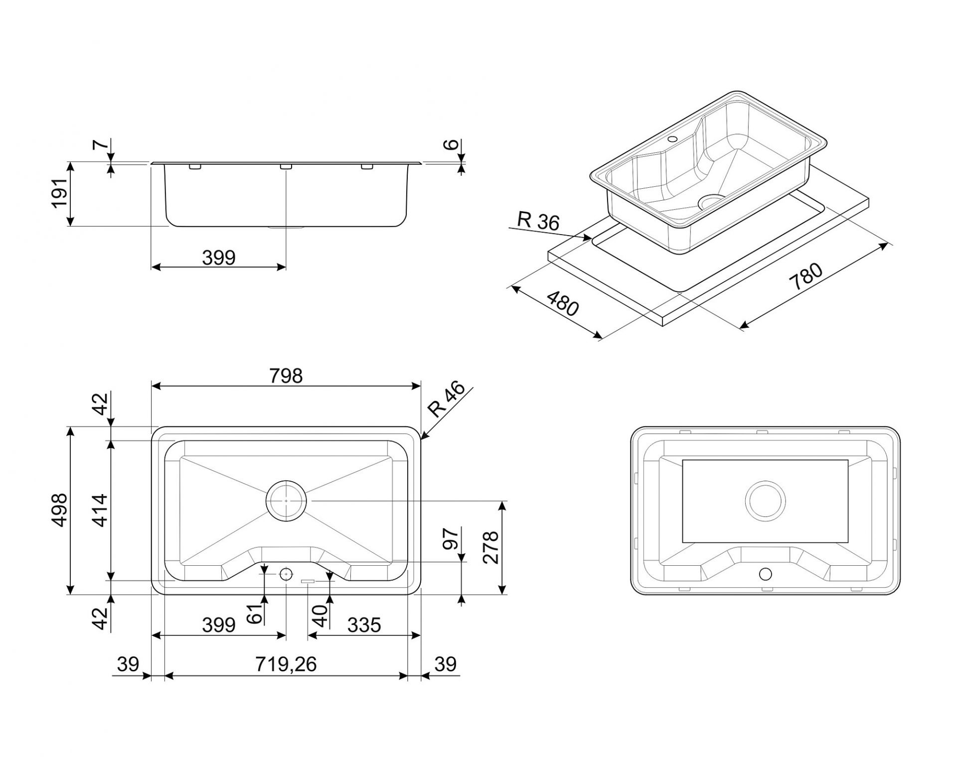 • Plautuvės aukštis virš stalviršio: 6 mm