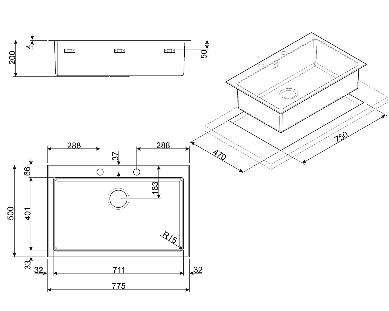 • Plautuvės aukštis virš stalviršio: 4 mm