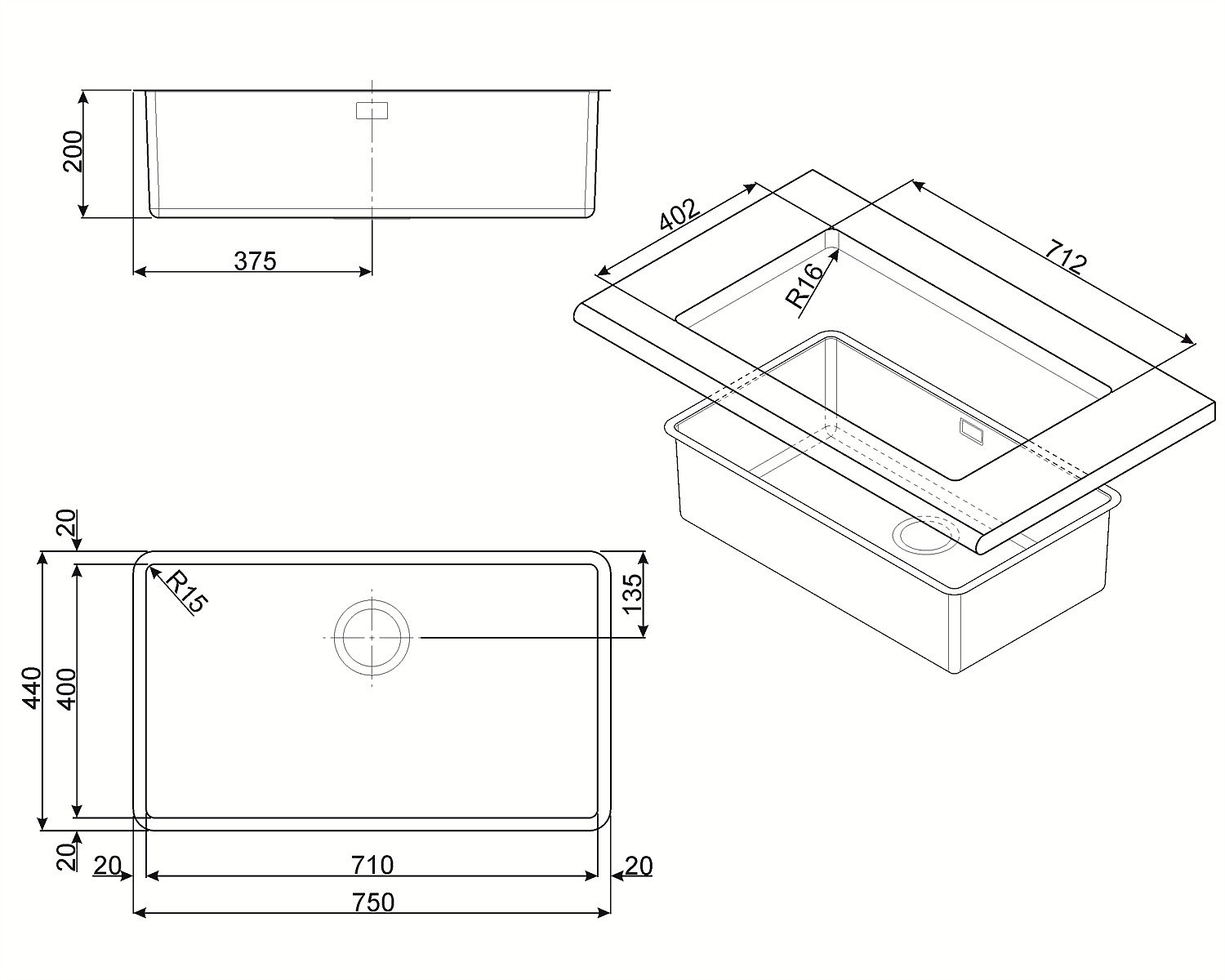 • Plautuvės matmenys: (A x P x G) 200 x 750 x 440 mm