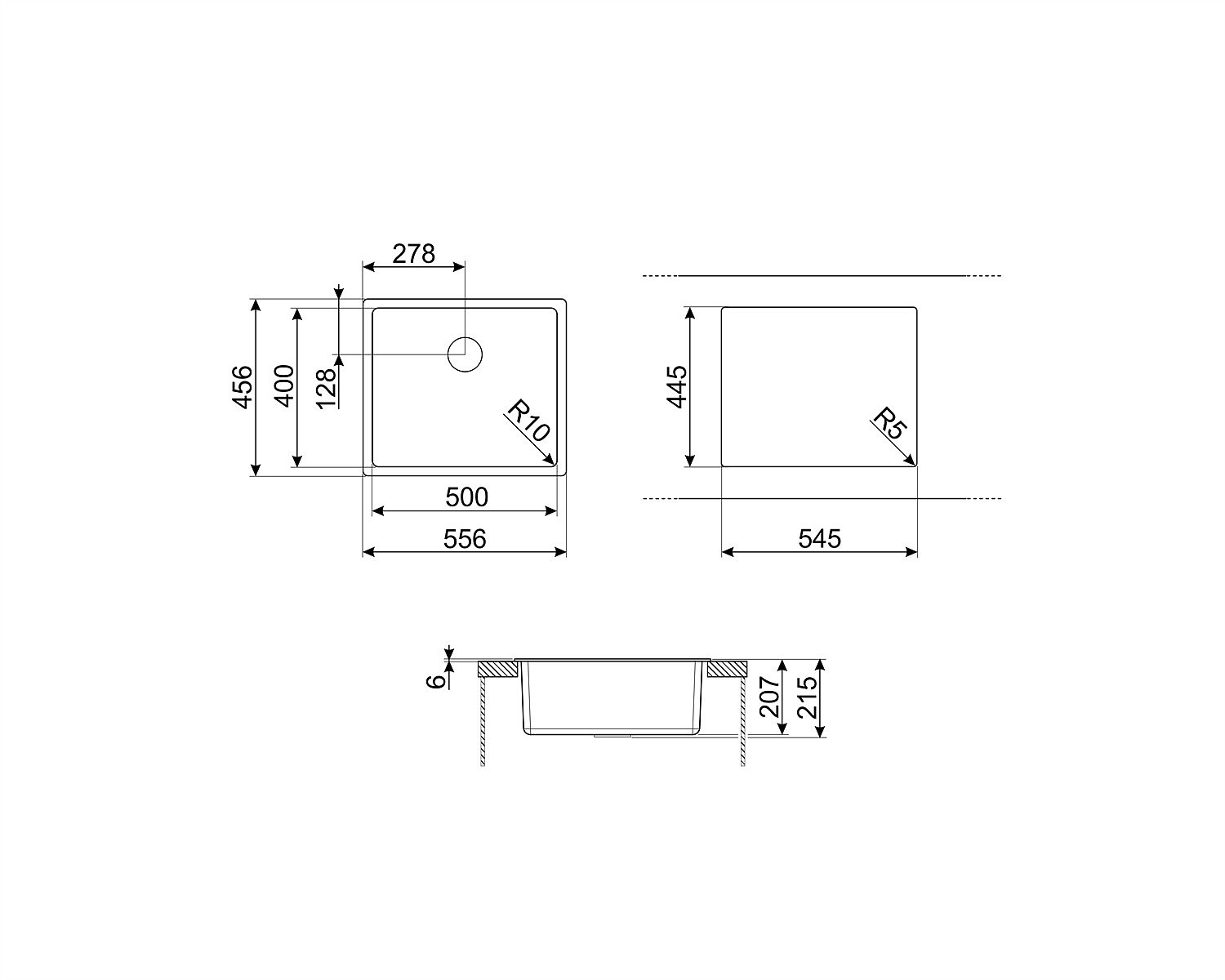 • Plautuvės aukštis virš stalviršio: 6 mm