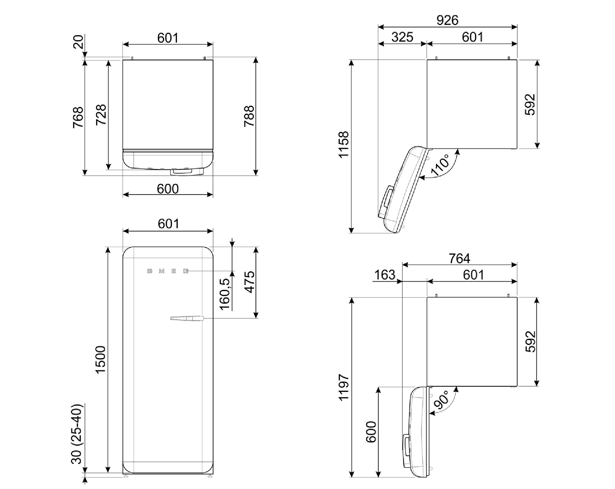 SMEG šaldytuvas, FAB28RCR6, Vyriai kairėje