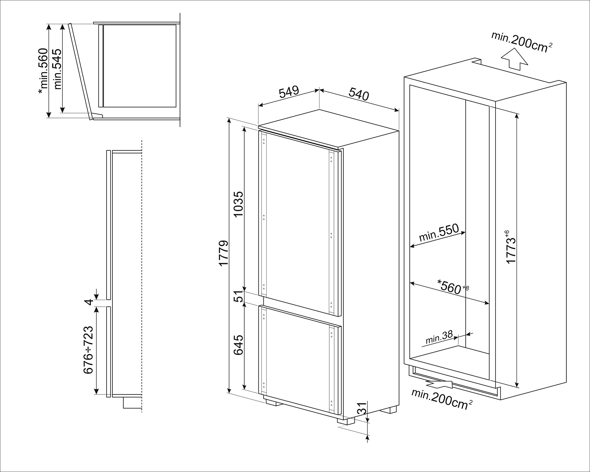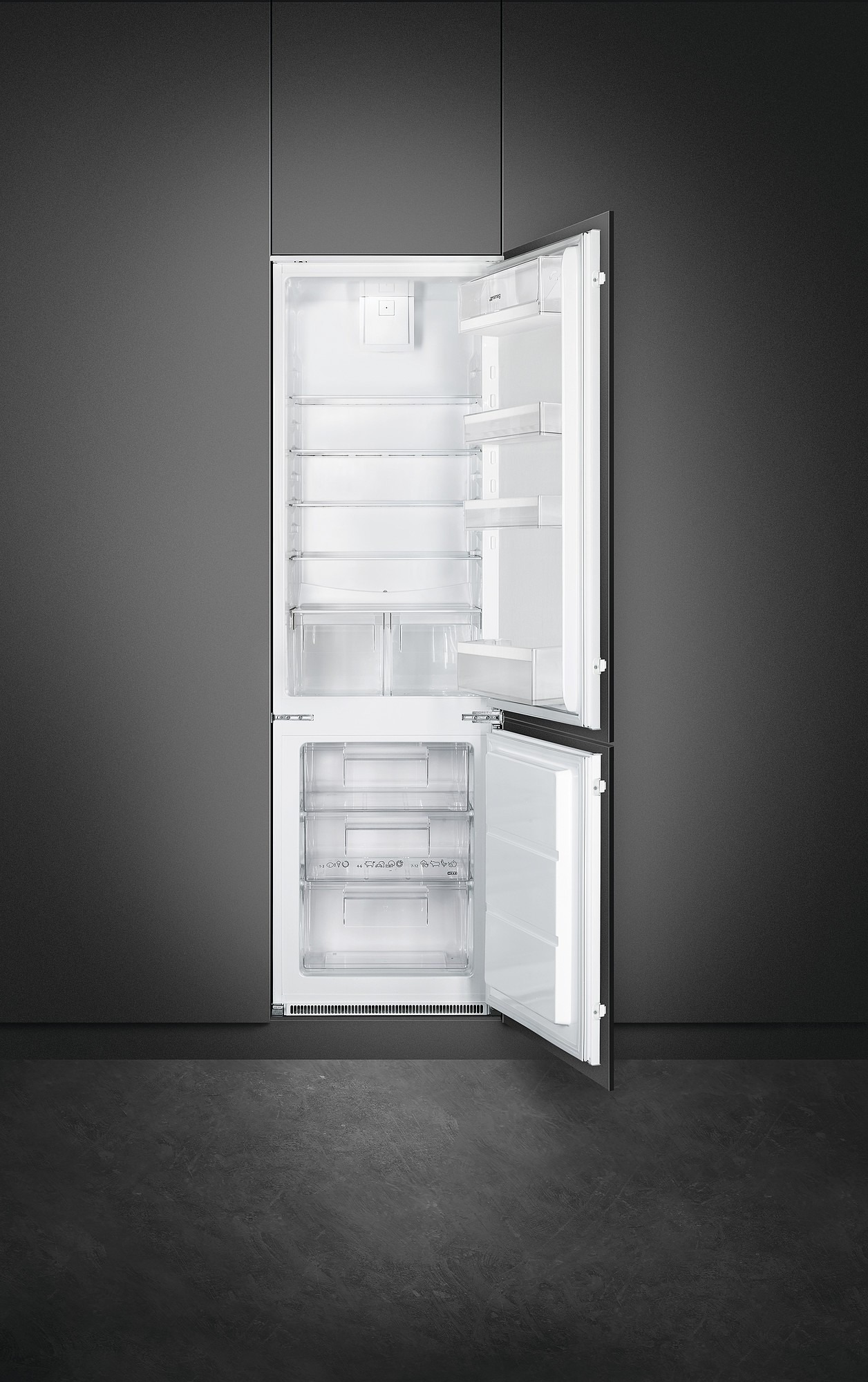 • Įmontuojamas šaldytuvas su šaldikliu apačioje