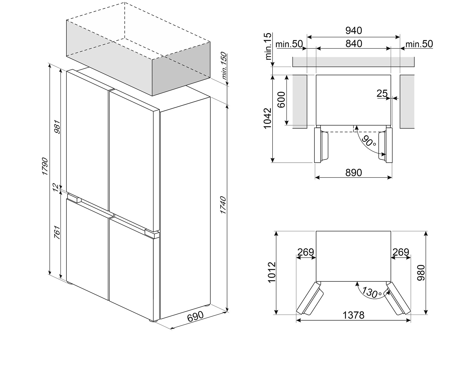• Laisvai pastatomas "4 Doors" tipo šaldytuvas