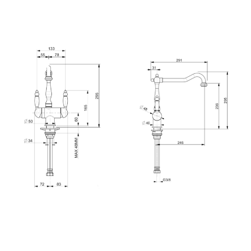 • Lanksčių žarnelių jungtis: 3/8"