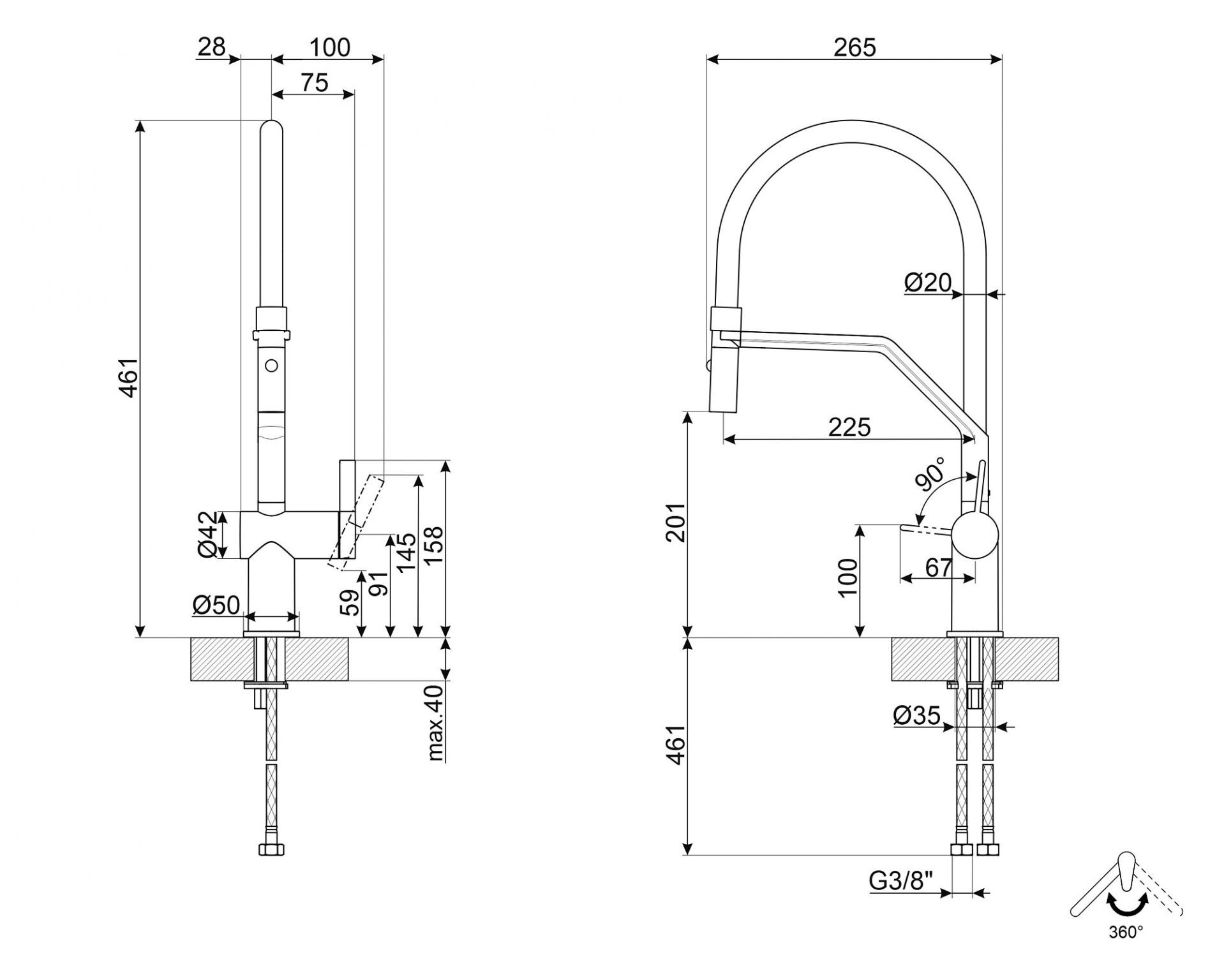 • Aukštis: 461 mm